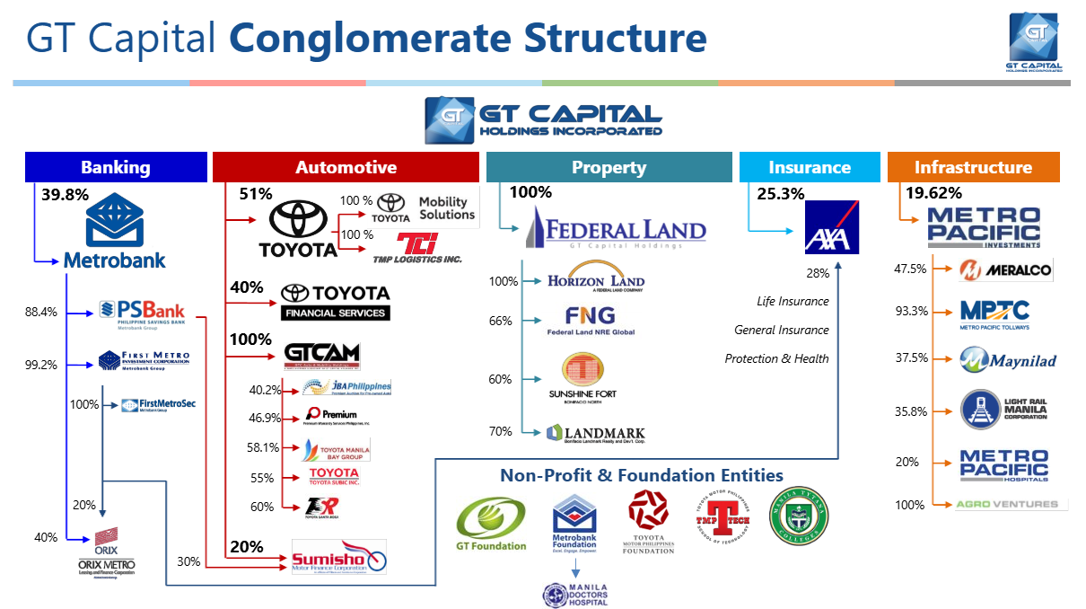 The following details GT Capital's complete conglomerate map and shareholding structure as of March 26, 2026: